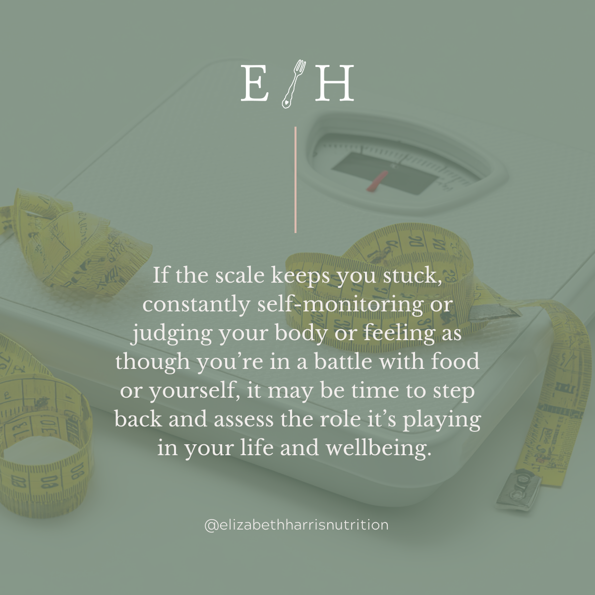 If the scale keeps you stuck, constantly self-monitoring or judging your body or feeling as though you’re in a battle with food or yourself, it may be time to step back and assess the role it’s playing in your life and wellbeing.